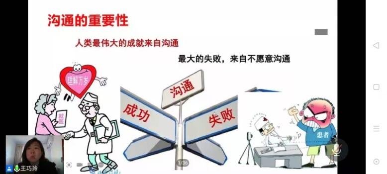 之后,王巧玲老师从四个方面深入阐释了医德的良好体现。第一要重视沟通。避免沟通不当造成医患矛盾,要善于沟通,和患者建立良好的关系。第二要提高医术。2020年3月2日,习近平总书记视察军事医学研究院时指出,要靠科学技术战胜疫情。我国科研人员研制疫苗,为我国防治疫情做出巨大贡献。因此要不断学习深造,不断提升自己,更好地为病人服务。第三要坚守职业道德。医生要恪守医德,维护医术的圣洁,坚决抵制违背医德的行为。第四要怀医者仁心。医者要有仁爱恻隐之心,关爱患者,一心一意为患者服务。